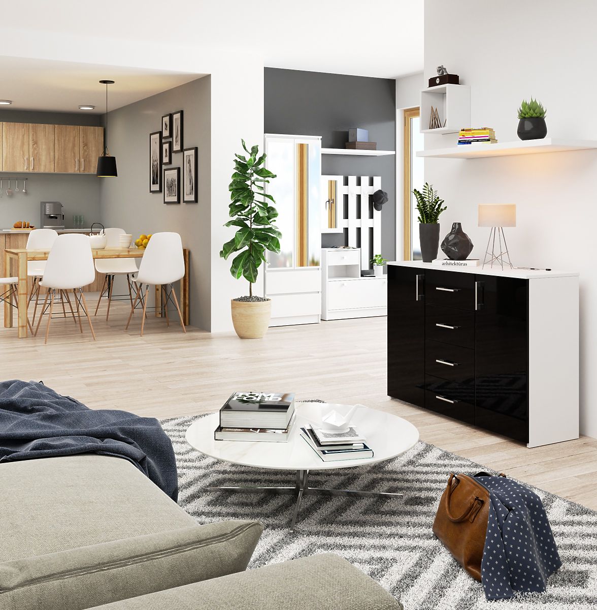 Fekete fényes komód 110x80x35 cm méretben, 4 fiókkal. .. többet