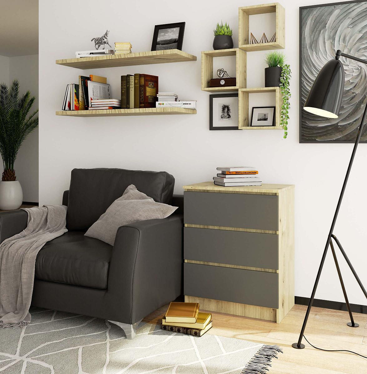 Banaby.hu » Gyerekbútor / Gyerek komódok és szekrények / Gyerek komódok / KOMÓD K60 3SZ CLP PK ARTISAN TÖLGY / SZÜRKE