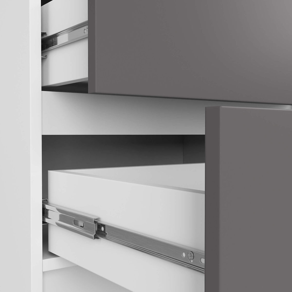 - A fiókok fém golyóscsapágyas síneken mozognak