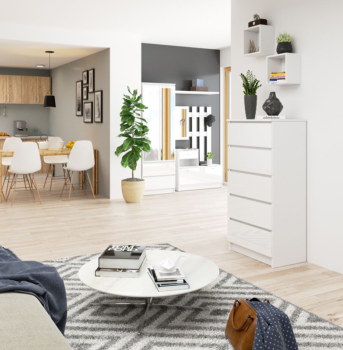 KOMÓD K60 5 FIÓK MAGASFÉNY Kiváló minőségű, 16 mm vastag laminált lapból készült, amely ellenáll a kopásnak.
