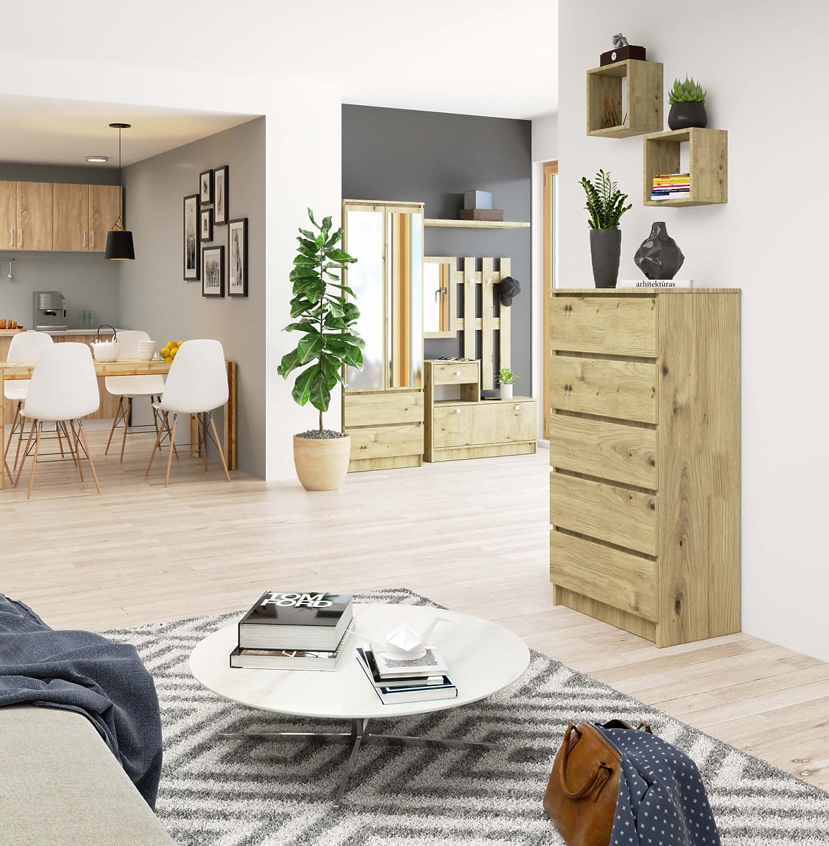 5 fiókos komód Tölgy Artisan színben, ABS élzárással. .. többet