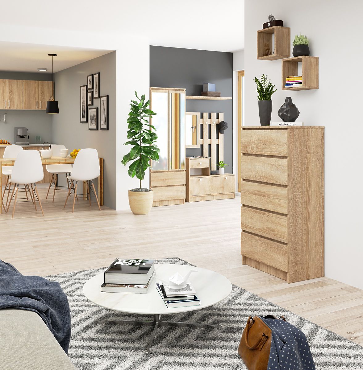 Bemutatjuk a kiváló minőségű komódot, amelyet a neves Kronospan cég készített. Ez a modell kopásálló, ami hosszú élettartamot biztosít. A bútor további előnyei a megbízható laminált lapból készült fiókelők. Az említett fiókok fém golyós csúszkákon mozognak. Ezenkívül az élek ABS anyagból készültek. A komód modern és egyedi sonoma színben van befejezve, amely világos és tágas belső terekhez illik. Elhelyezhető hálószobában, nappaliban vagy akár előszobában is - mindez a kapacitásának köszönhetően.