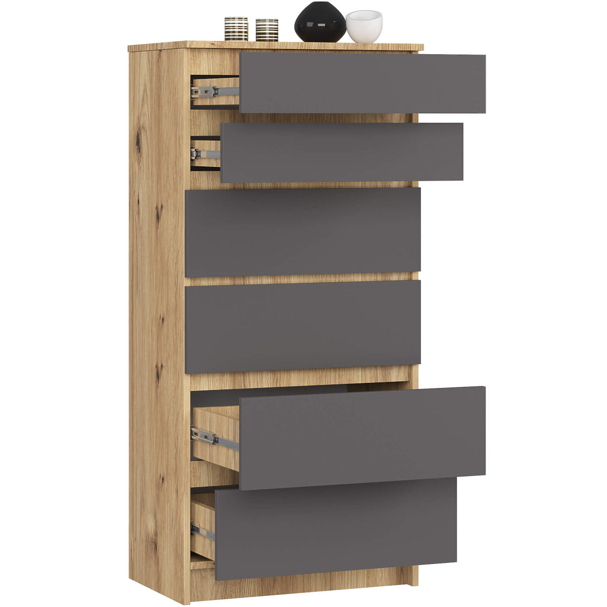 Banaby.hu » Gyerekbútor / Gyerek komódok és szekrények / Gyerek komódok / KOMÓD K60 6SZ CLP PK ARTISAN TÖLGY / SZÜRKE