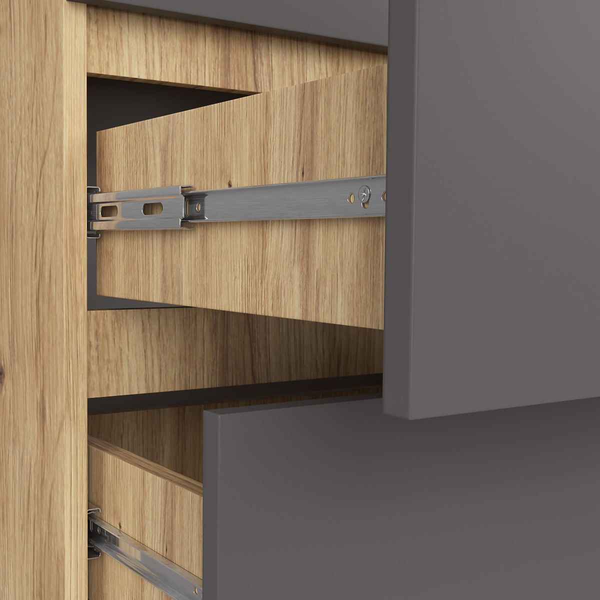 - A fiókok fém görgős síneken mozognak- Az élek ABS élzárással vannak ellátva, amely magas védelmet nyújt a sérülések ellen