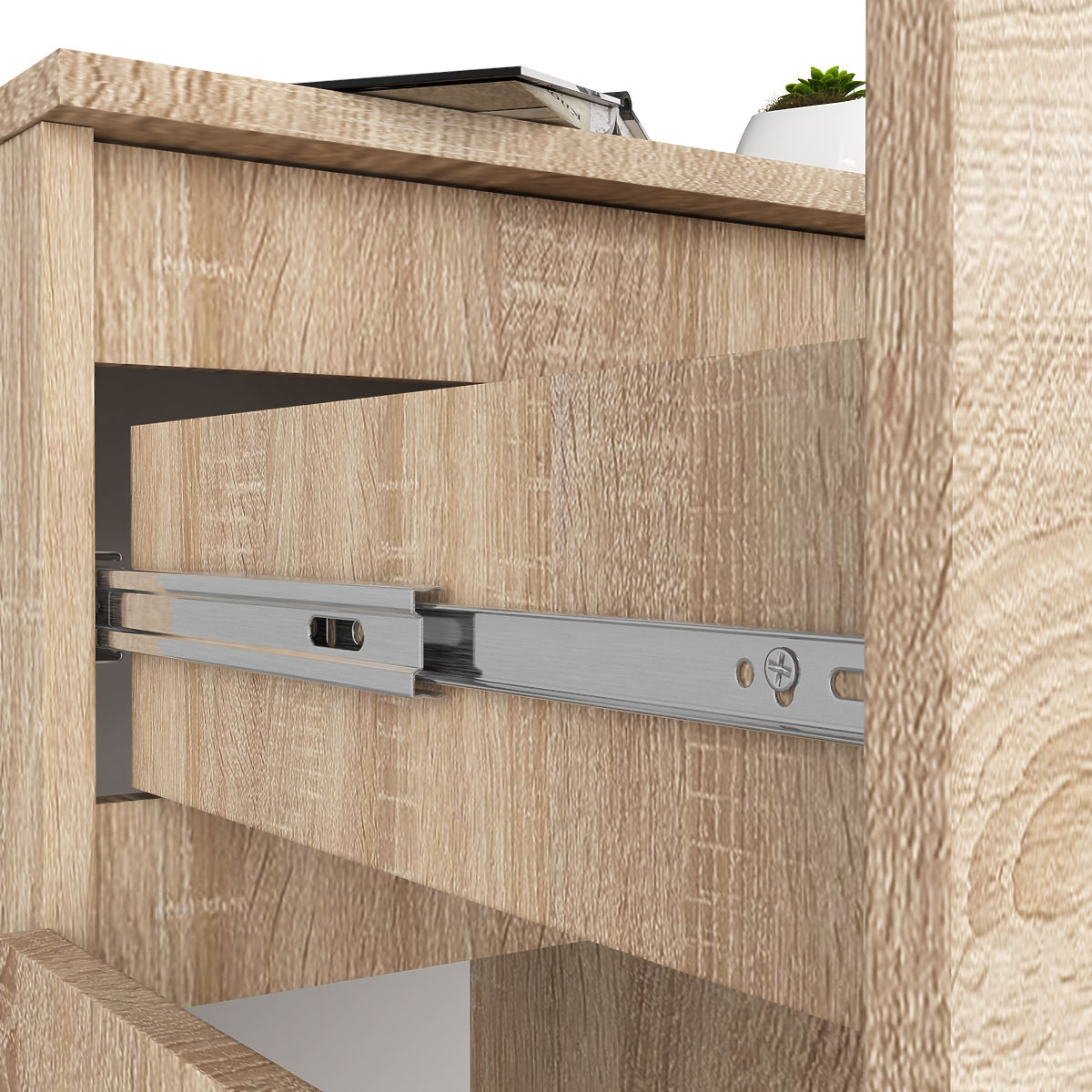 - A fiók fém golyós csúszkákon mozog