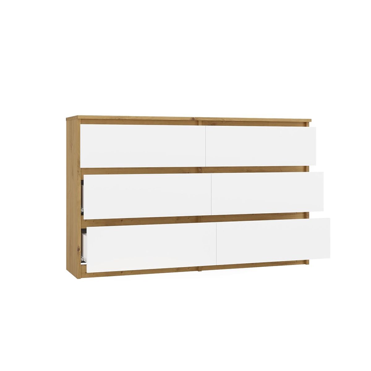 Tágas és stílusos komód 6 fiókkal, Artisan Tölgy és fehér színekben. .. többet