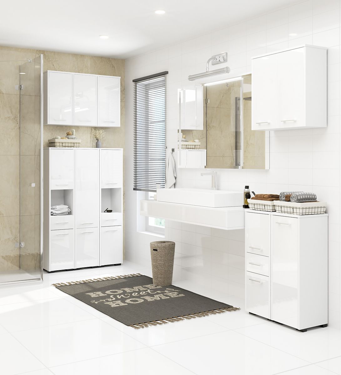 Fehér fényes fürdőszobai szekrény 140 cm magassággal. .. többet