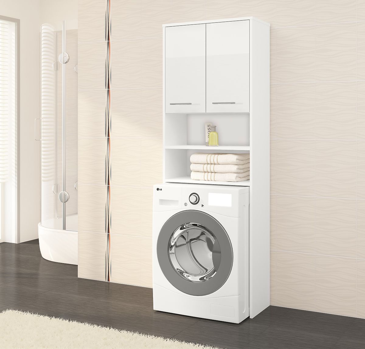 Tágas szekrény mosógép felett, fehér fényes kivitelben. .. többet