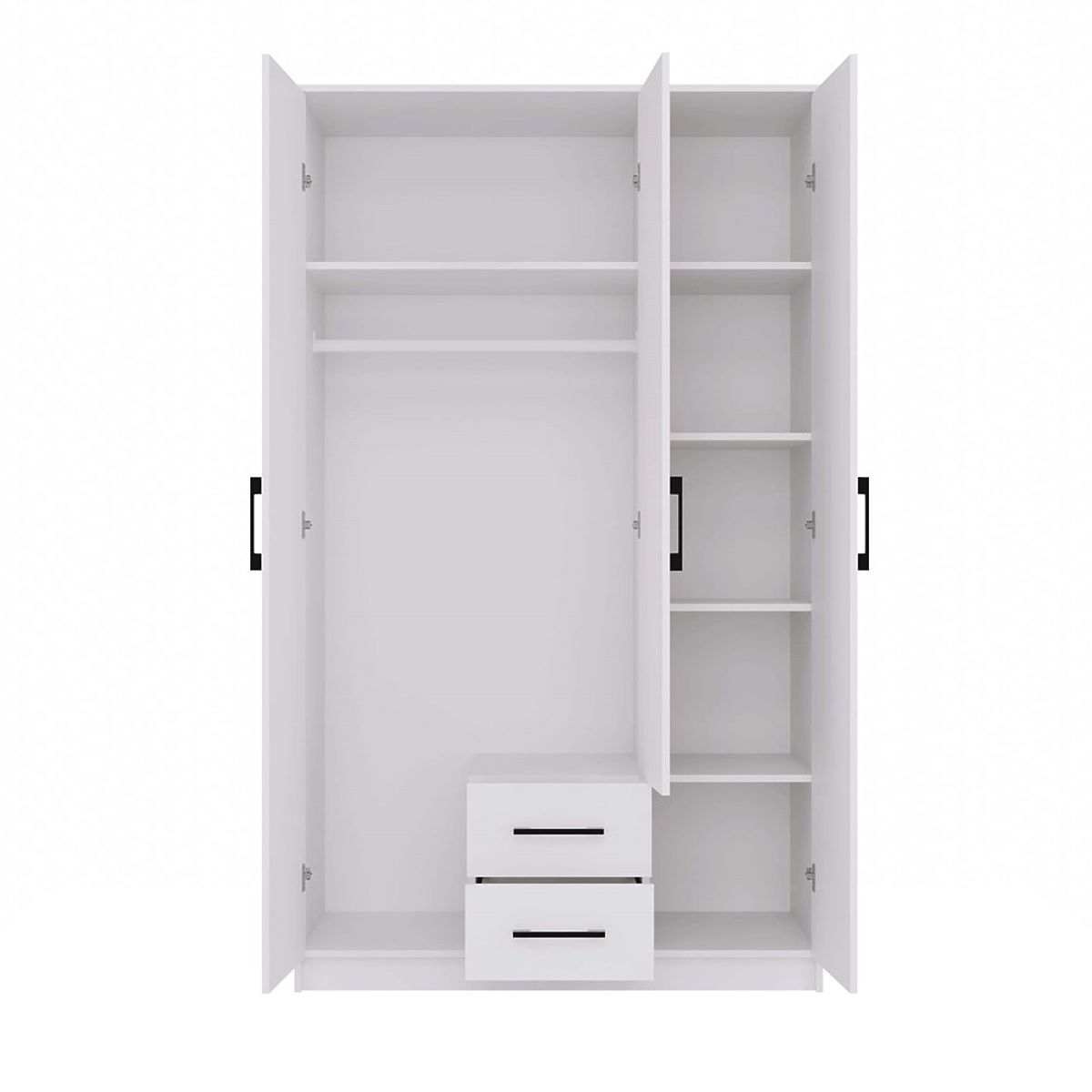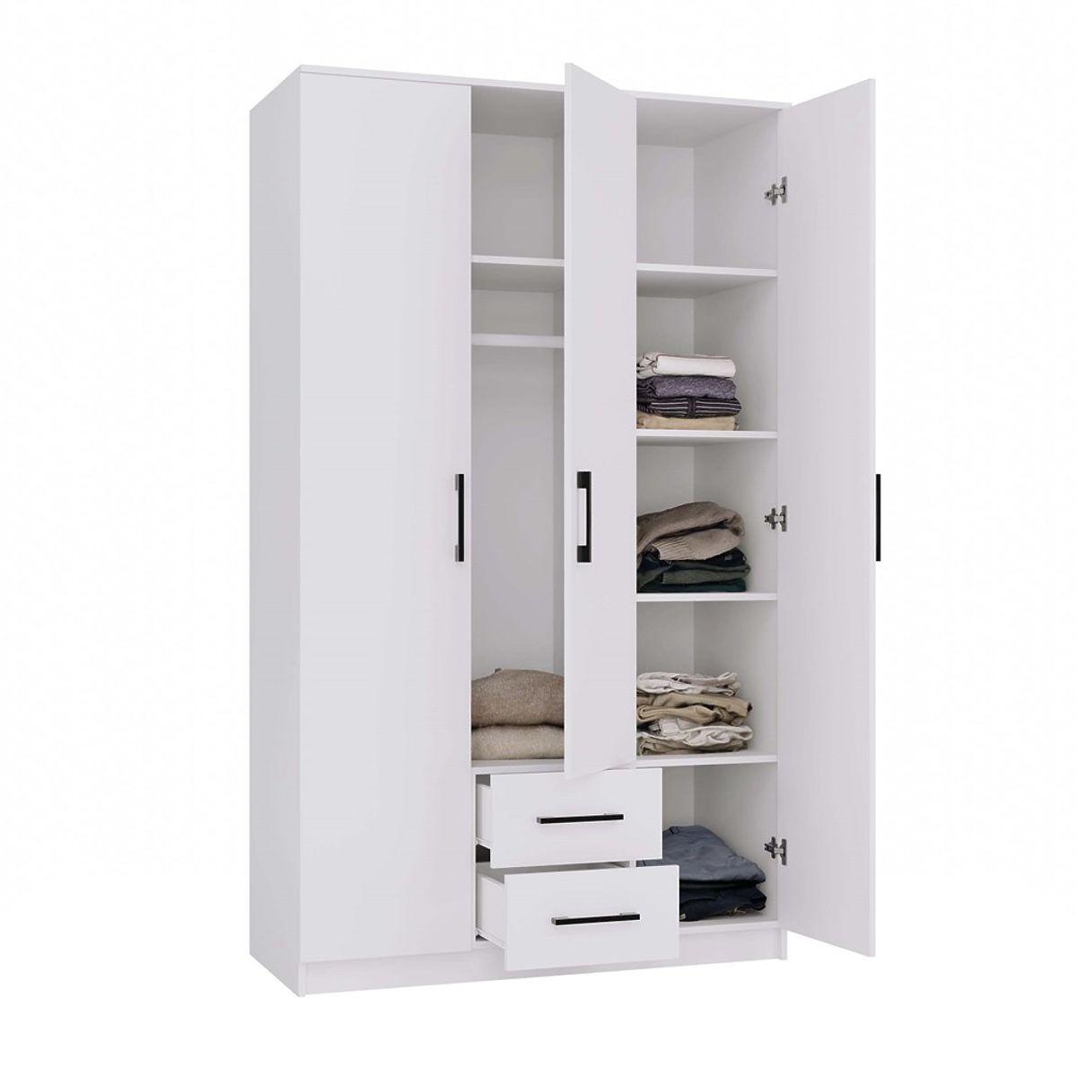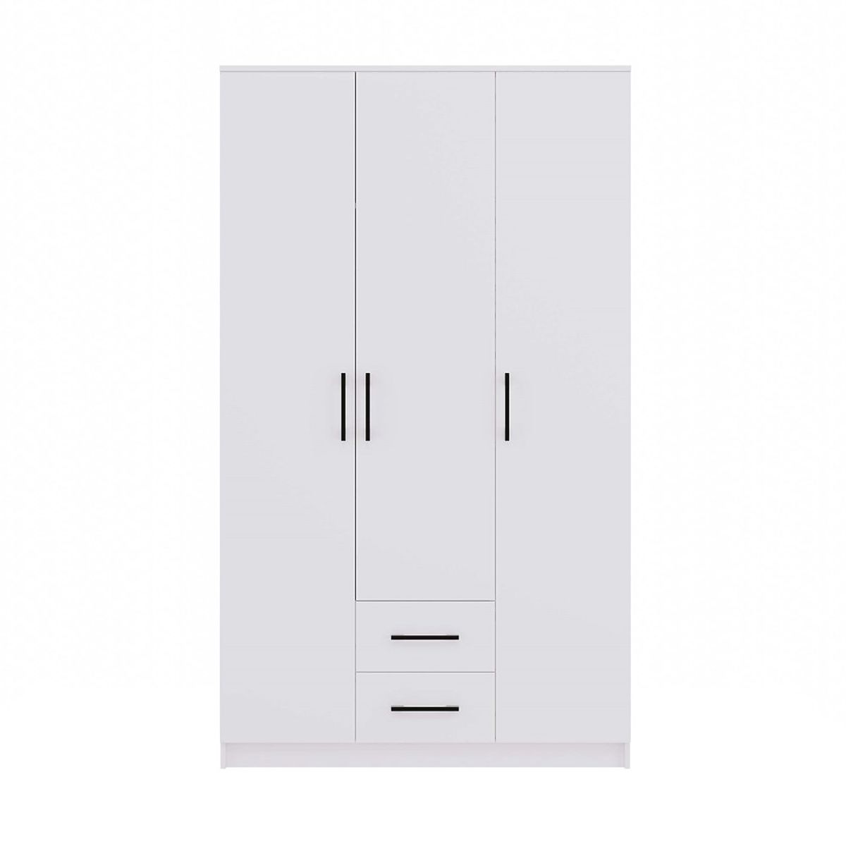 Fehér, 3 ajtós, 2 fiókos szekrény modern dizájnnal. .. többet
