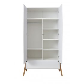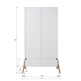 A ruhásszekrény lábai tölgyfából készültek. Az egész ruhásszekrényt nagyon könnyű tisztán tartani, amit a gyerekszobában értékelni fog. Ez egy kétszárnyú, tágas ruhásszekrény, amelyben elhelyezheti gyermeke összes holmiját.