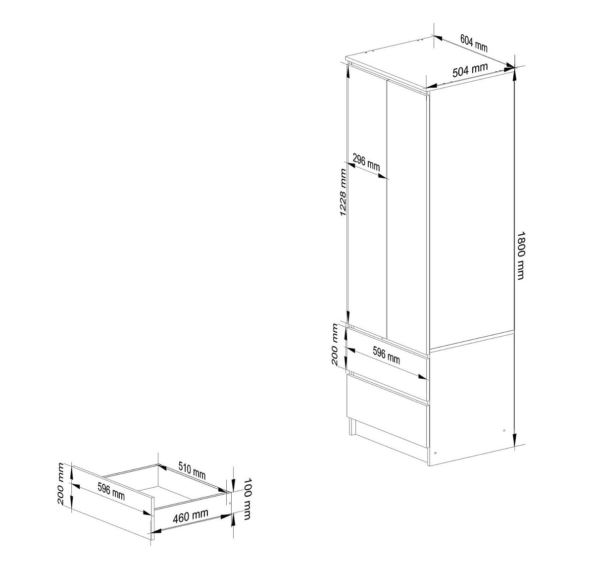 STAR K60 SZEKRÉNY, 2 AJTÓ, 2 FIÓK Készült 16 mm-es kopásálló laminált lapból.