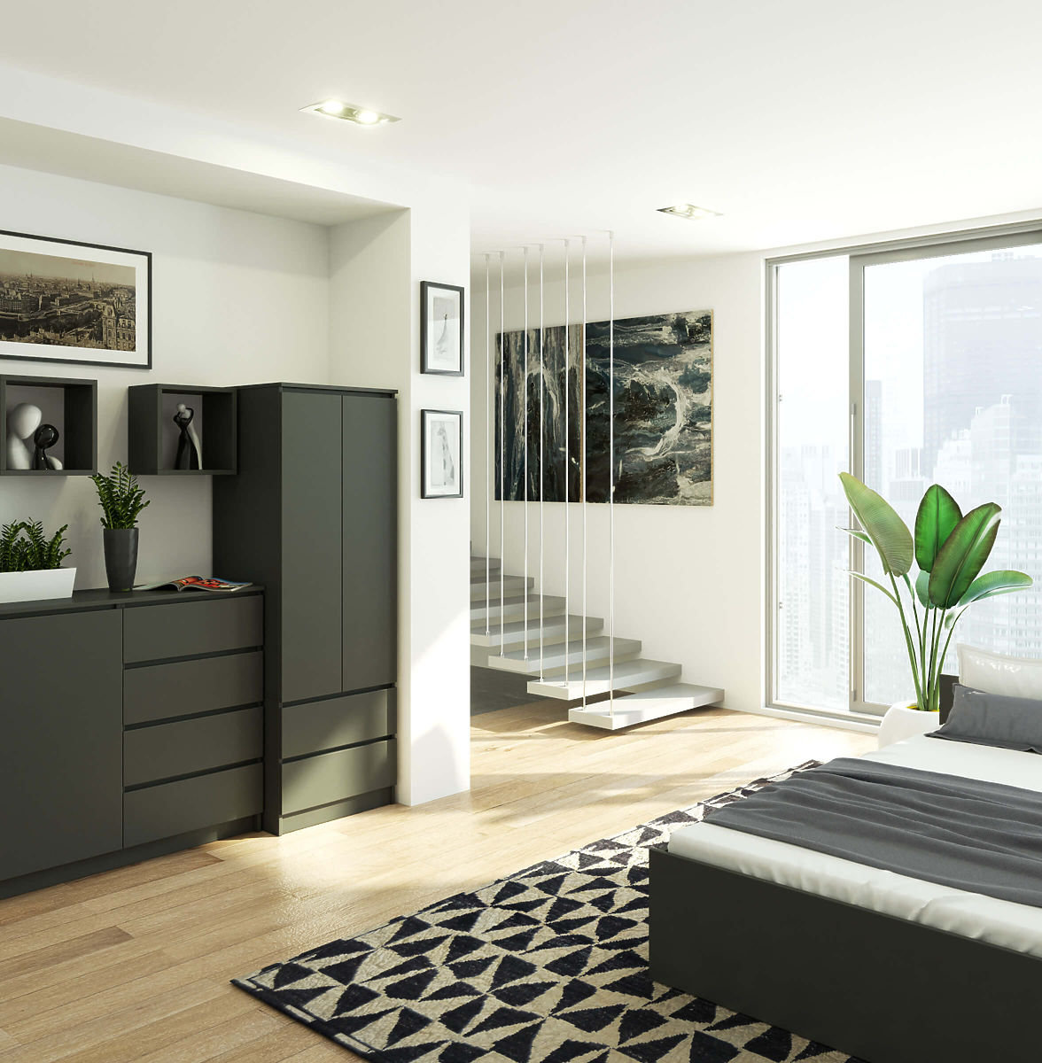 Grafit szürke szekrény 2 ajtóval és 2 fiókkal. .. többet