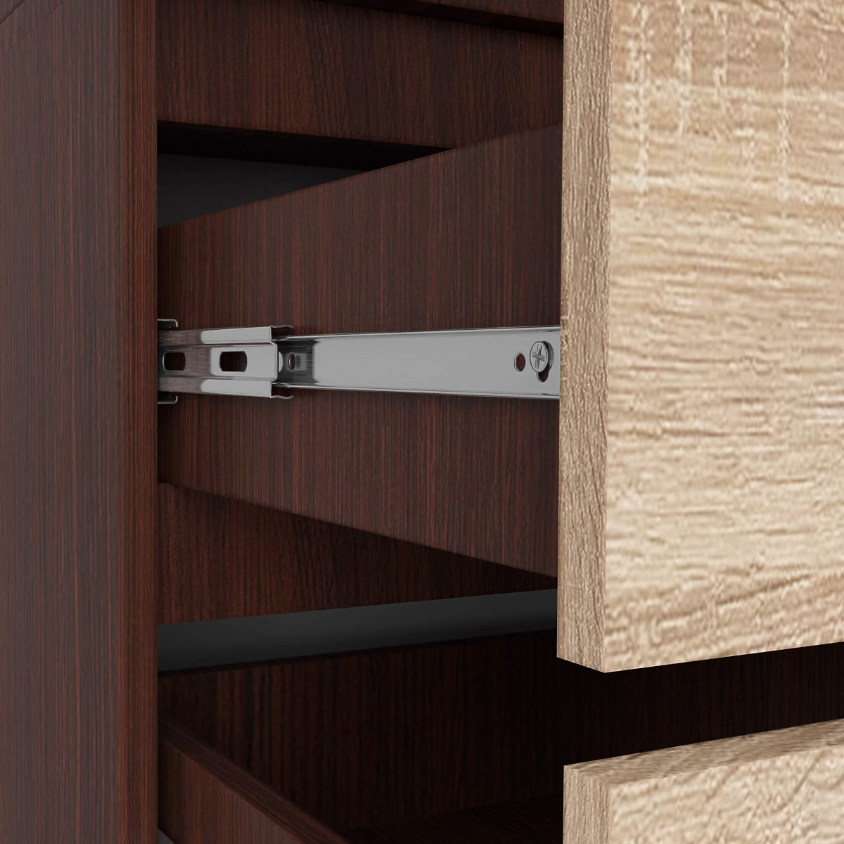 A bemutatott szekrények a funkcionalitást és a modern dizájnt ötvözik. Magas minőségű laminált lapokból készültek, amelyek fokozott kopás- és egyéb mechanikai sérülésállósággal rendelkeznek. A szekrények élei – mint a leginkább sérülésnek kitett elemek – további megerősítést kaptak ABS élzárással. Ennek köszönhetően a bútor megőrzi tökéletes megjelenését a használat teljes ideje alatt. A két színmotívum – a sötét, mély wenge és a világos, hűvös sonoma – kombinációja nagyon eredeti és modern dizájnt hoz létre.