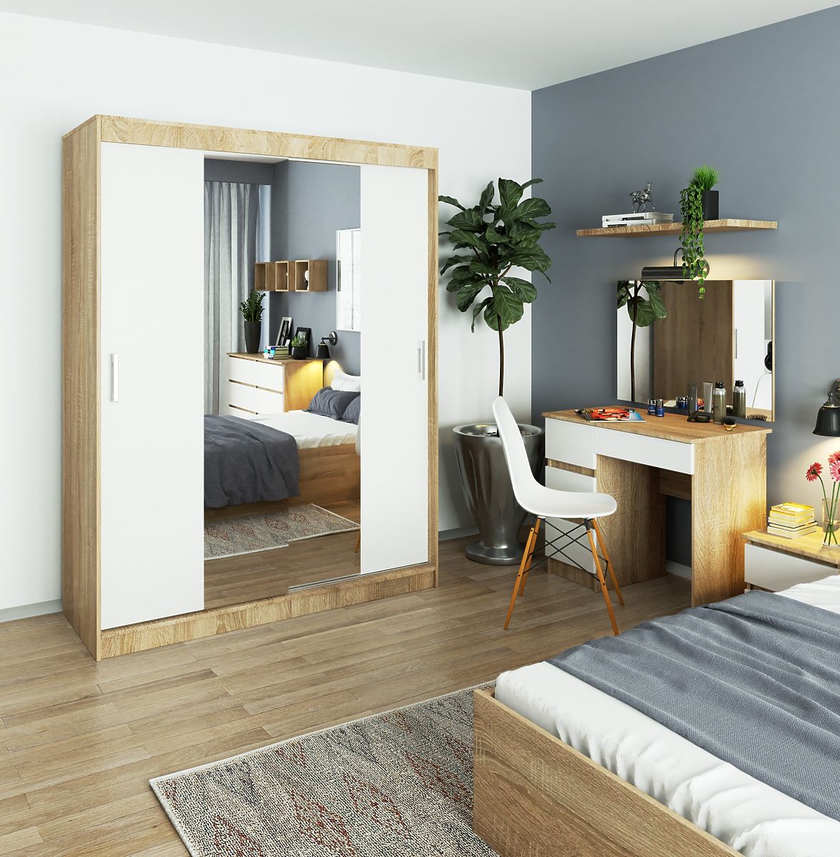 A szekrény nem kell, hogy unalmas bútor legyen. A két szín és a tükör kombinációjával több életet hoz a helyiségbe. Ugyanakkor funkcionális és megkönnyíti a ruhák rendben tartását. Tartósságával is lenyűgöz, sok éven át szolgálva.