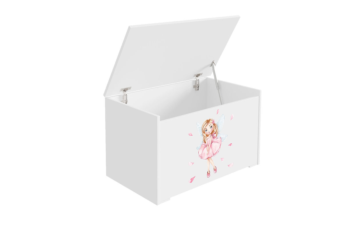 Fehér játékláda szárnyas lány mintával és UV-nyomattal. .. többet