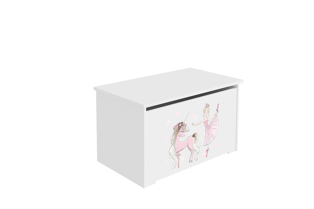 Banaby.hu » Gyerekbútor / Gyerek komódok és szekrények / Játéktárolók / Daria játéktároló láda fehér, Lányka és egyszarvú mintával