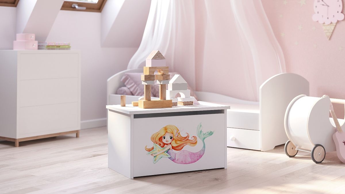 Fehér játéktároló láda sellő mintával és UV nyomtatással. .. többet