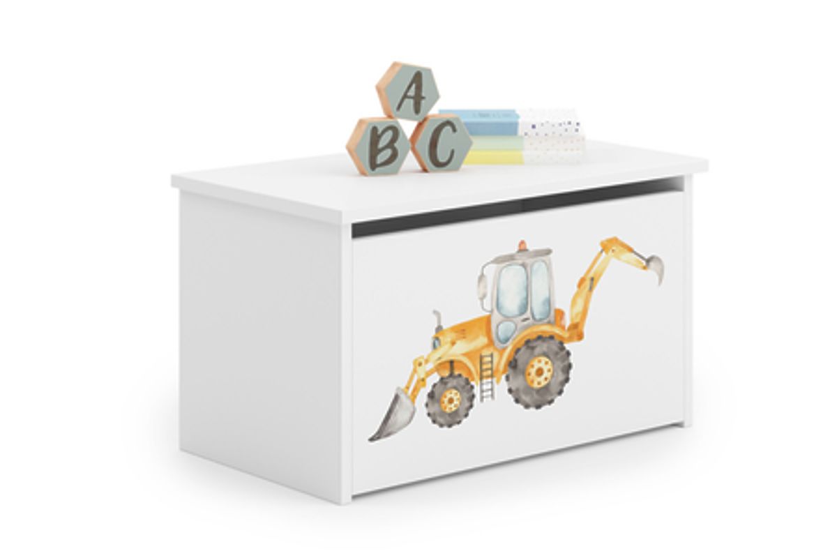 Fehér játéktároló láda sárga markoló mintával. .. többet