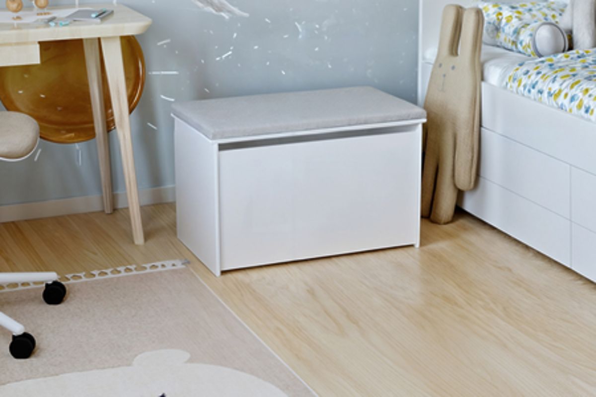 A DARIA játéktároló stílusos és funkcionális bútordarab, amely segít rendet tartani a gyerekszobában, miközben kényelmes ülőhelyként is szolgál. Univerzális fehér színben készült, ideális megoldás gyerekszobákba. Továbbá, a kárpitozott ülőke kényelmet és komfortot biztosít, a tágas belső tér pedig elnyeli az összes játékot és kiegészítőt.