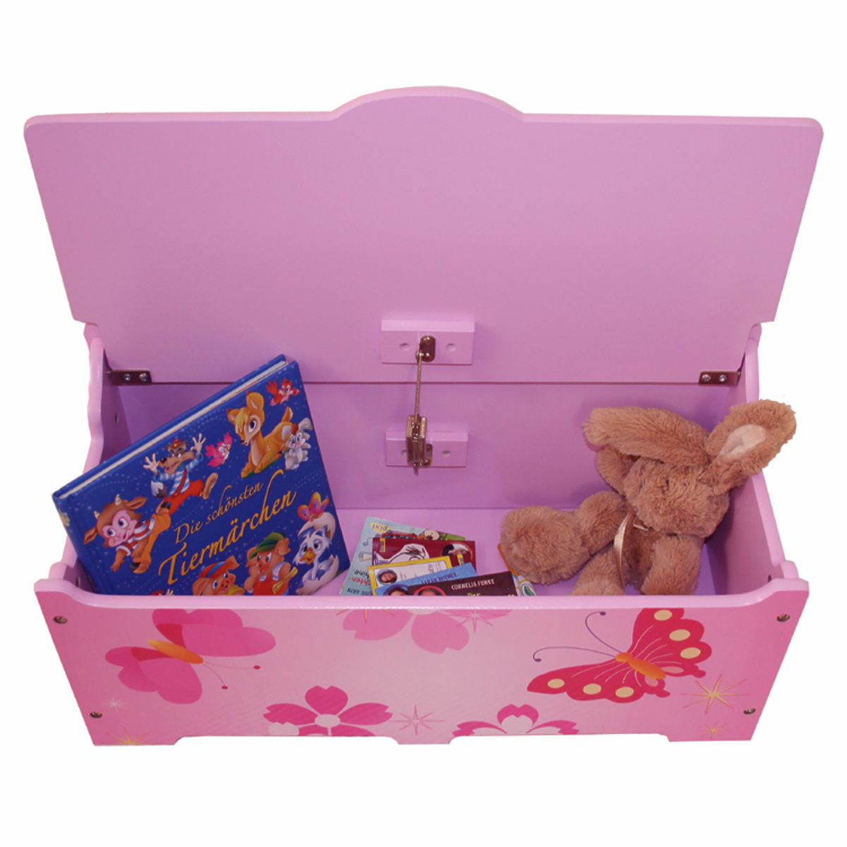 Gyerek játéktároló láda népszerű egy népszerű német gyártótól pillangó motívummal. Minden gyermek birodalom praktikus kiegészítője. Ideális segítő, hogy nem csak játékot tárolására.