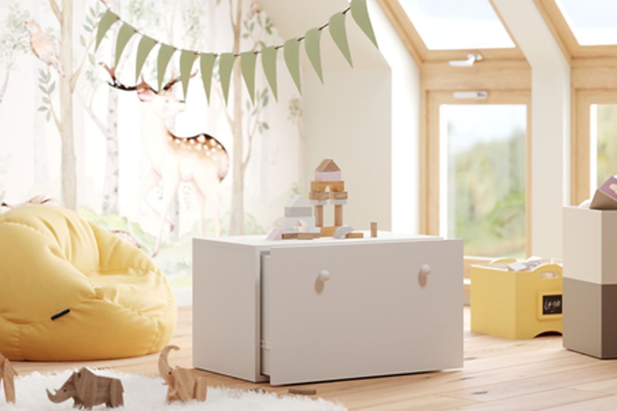 Az INGA láda modern, minimalista megjelenésével tűnik ki, amely remekül illeszkedik különböző belső stílusokhoz. Nemcsak játéktárolóként szolgálhat, hanem praktikus tárolóként is más helyiségekben. Tartós laminált lapból készült és PVC éllel van ellátva, ami szilárdságot és könnyű tisztíthatóságot garantál.