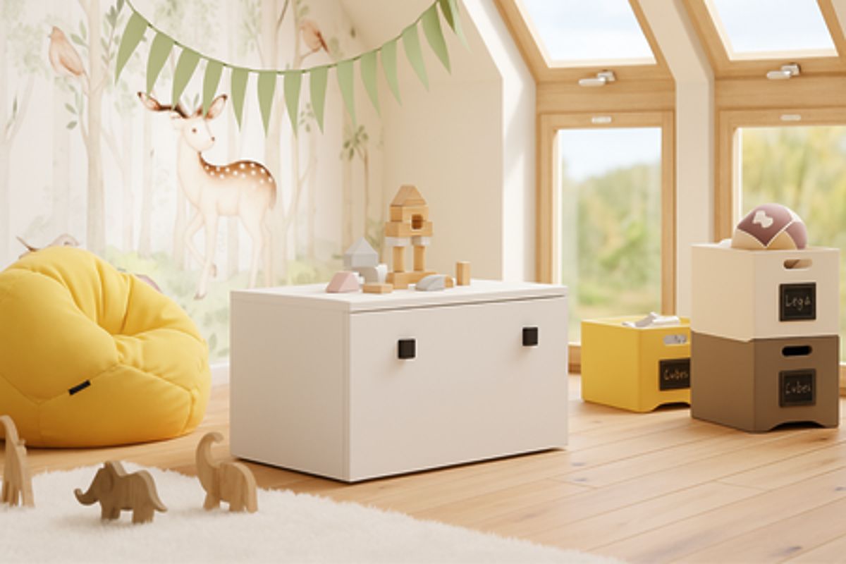 Az INGA láda modern, minimalista megjelenésével különböző belső stílusokhoz is remekül illeszkedik. Nemcsak játéktárolóként, hanem más helyiségek praktikus rejtekhelyeként is szolgálhat. Tartós laminált lapból készült és PVC éllel van ellátva, ami garantálja a szilárdságot és a könnyű tisztántartást.