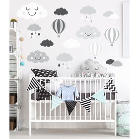 Banaby.hu » Dekoráció / Gyerek matricák / Gyerek öntapadó falmatricák / Faldekoráció - felhők és léggömbök - szürke-fehér