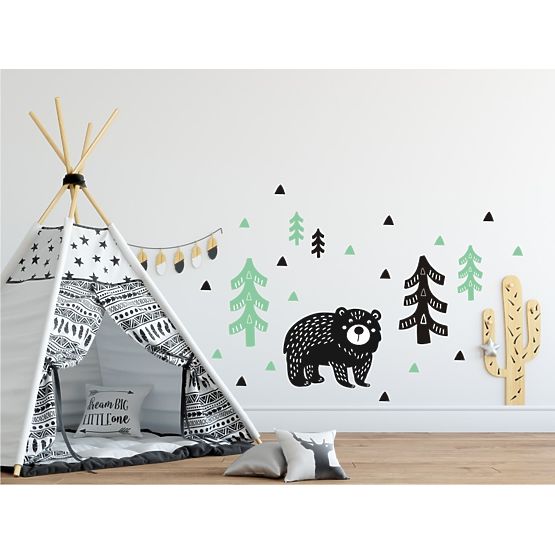 Banaby.hu » Dekoráció / Gyerek matricák / Gyerek öntapadó falmatricák / Faldekoráció - medve az erdőben - mentazöld-fekete