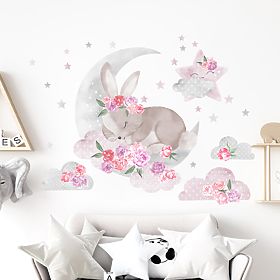 A felhős alvó nyuszi matrica gyönyörű kiegészítője lesz minden lány szobájának. Tedd boldoggá kis hercegnődet azzal, hogy díszíted a szobáját ezzel a gyönyörű matricával.