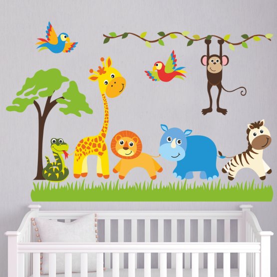A szafari mintás falmatrica nagyon szép. Élénk, vidám és tarka színű, beragyogja a szobát. .. többet