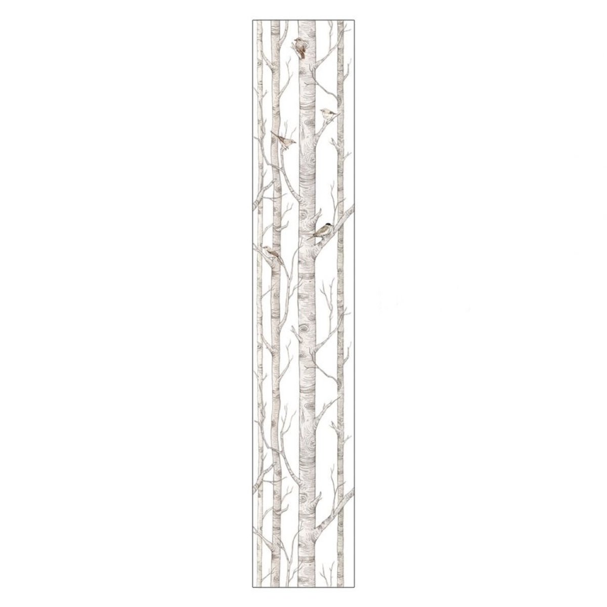 Eredeti, divatos tapéta, nyír és madár motívumokkal készült anyagból készült, könnyű alkalmazást biztosító anyagból.