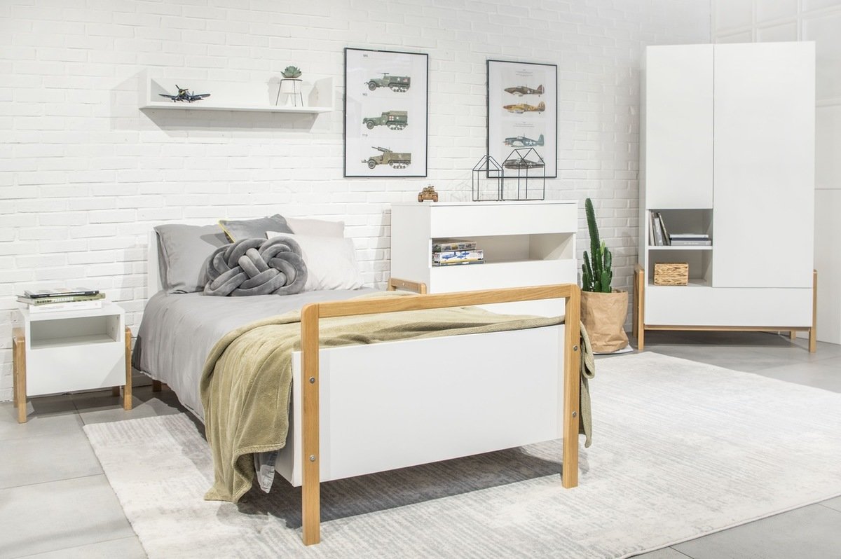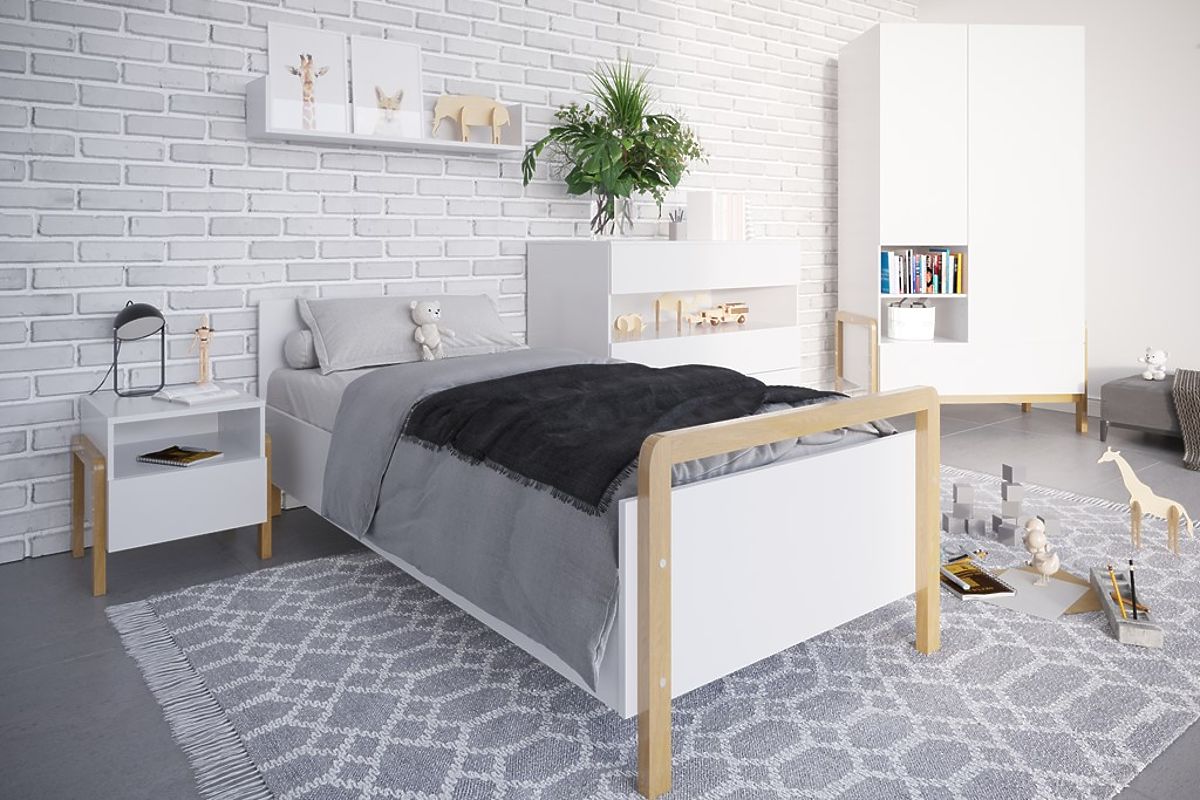 A skandináv stílusú Viktor gyerekágy minden szobát feldob. A 180 x 80 cm méretű, fa elemekkel díszített fehér ágy a kényelmes és biztonságos alvás kombinációját kínálja.