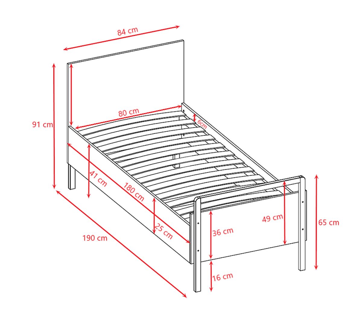 Megjegyzés : A matrac nem része az ágynak. Válasszon egy 180 x 80 cm méretű matracot a gyermekmatrac kategóriában.
