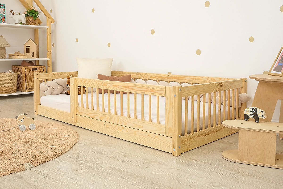 Alacsony Montessori ágy oldalsó korláttal a gyermekek önállóságának támogatására. .. többet