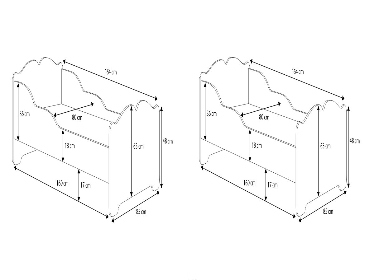 Az ANNA lány ágy 160x80 méretben a funkcionalitás, biztonság és esztétika kombinációja. A klasszikus fehér szín és az ágy fején található bájos lányos minta tökéletesen illeszkedik a gyerekszobába, és otthonos, stílusos alvóhelyet teremt.