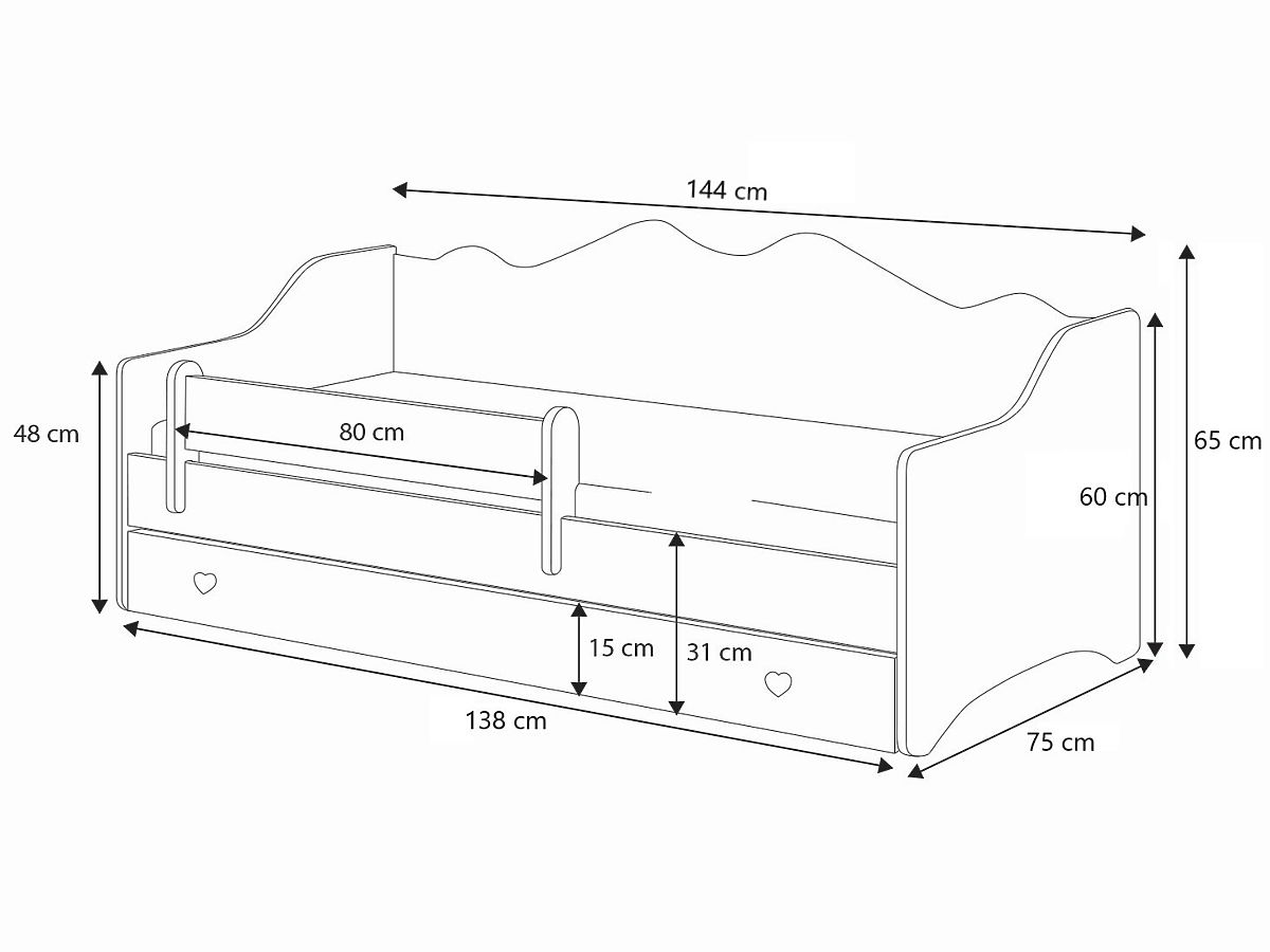 Az EMMA modell funkcionalitását számos praktikus megoldás hangsúlyozza, amelyek megkönnyítik a mindennapi életet. Az ágy tágas, kerekeken guruló fiókkal van felszerelve, amely kiválóan alkalmas ágynemű, játékok, játékok vagy más tárgyak tárolására, segítve a rend fenntartását a gyerekszobában. További előnye a mozgatható védőkorlát, amely az ágy bármelyik oldalára felszerelhető, növelve annak sokoldalúságát és biztonságát. Az ágy szerkezete akár 110 kg terhelést is elbír, így hosszú évekig szolgálhat. A FLEX rendszerű rugalmas lécek használata optimális testtámaszt biztosít, ami befolyásolja az alvás minőségét. Ezenkívül a magas ágytámla lehetővé teszi, hogy az ágy nappal kényelmes kanapéként szolgáljon – ideális olvasáshoz, játékhoz vagy pihenéshez. Ez a multifunkcionális megoldás kisebb és nagyobb helyiségekben egyaránt beválik, teljes mértékben megfelelve a gyermekek és szüleik igényeinek.