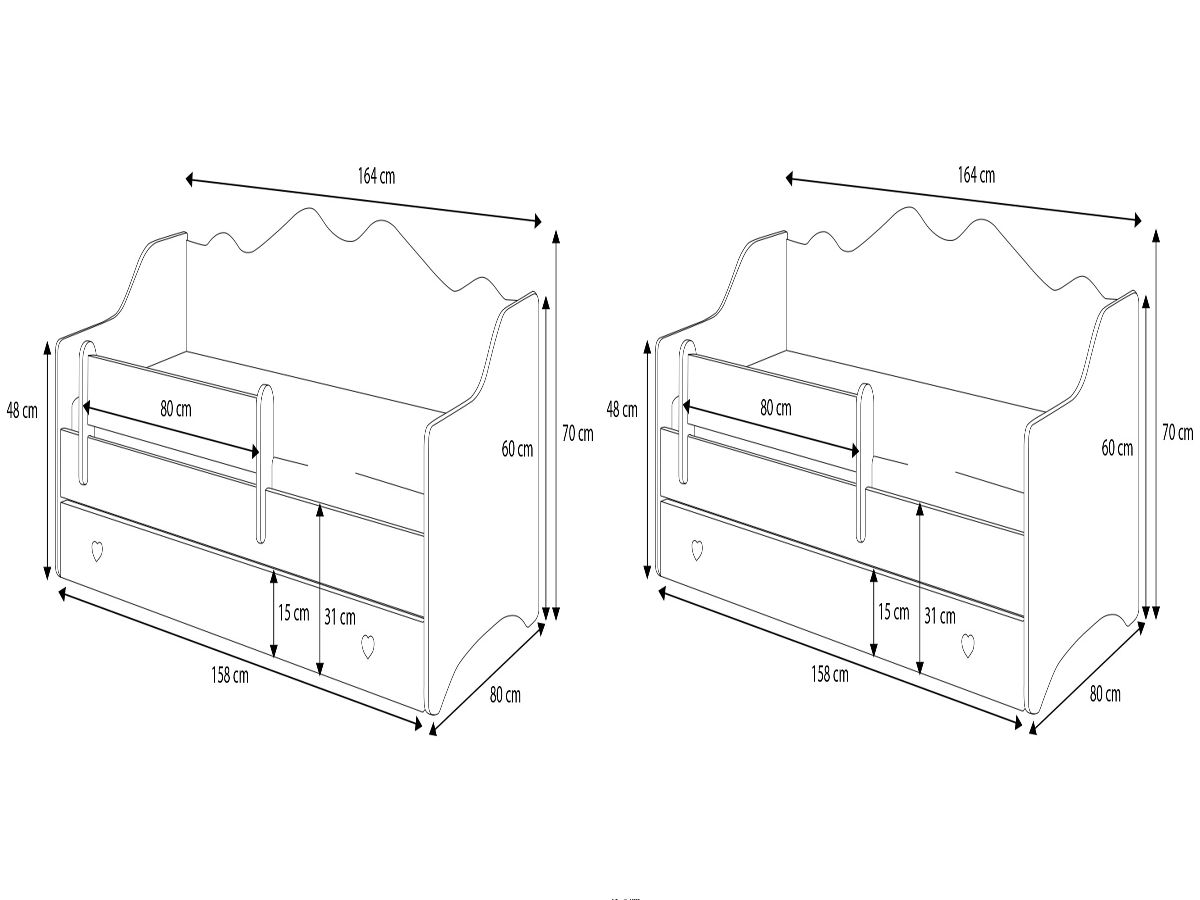 Banaby.hu   »   Gyerekágyak   /   Gyerekágyak leesésgátlóval   /   EMMA kétszemélyes ágy fiókkal és korláttal 160x80 szürke fogantyú