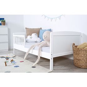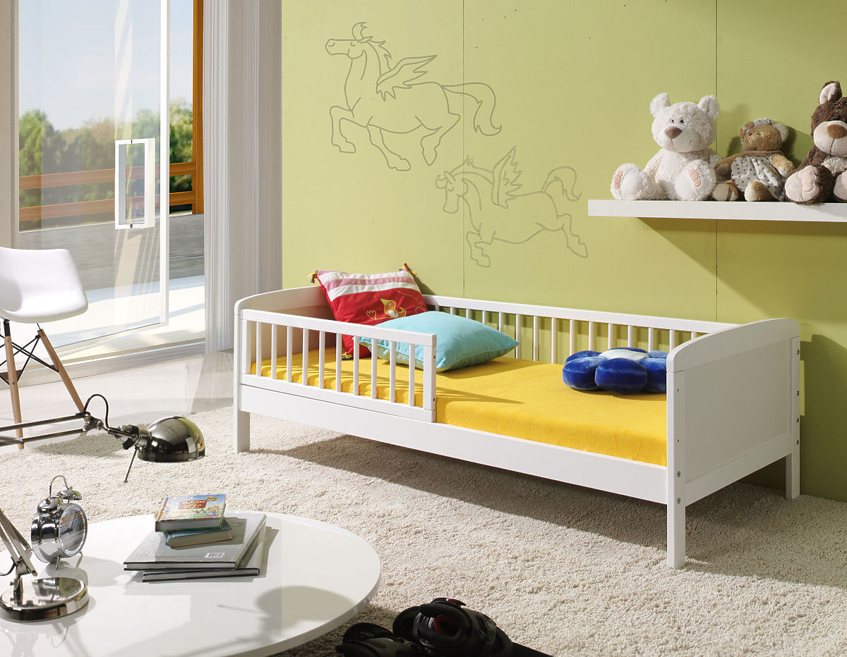 Fehér gyerekágy fenyőből, modern dizájnnal és biztonságos lekerekített élekkel. .. többet