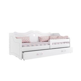 Stílusos Julie babaágy fehér. Emelt hát és oldal. Tervezése szerint az ágy illeszkedik a lány szobájába. Napközben kanapéként (kanapéként), éjszaka ágyként szolgál. Az ágy rögzítésének köszönhetően kiválóan alkalmas kisgyermekek számára is. A gyakorlati tároló helyet tartalmazza.
