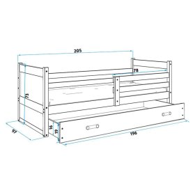 Egyetlen szürke-zöld sziklás óvodai ágy fiókkal és biztonsági rúddal. Signallemzők: - a korlát univerzális, az összeszerelés során eldönti, melyik oldalra .. többet