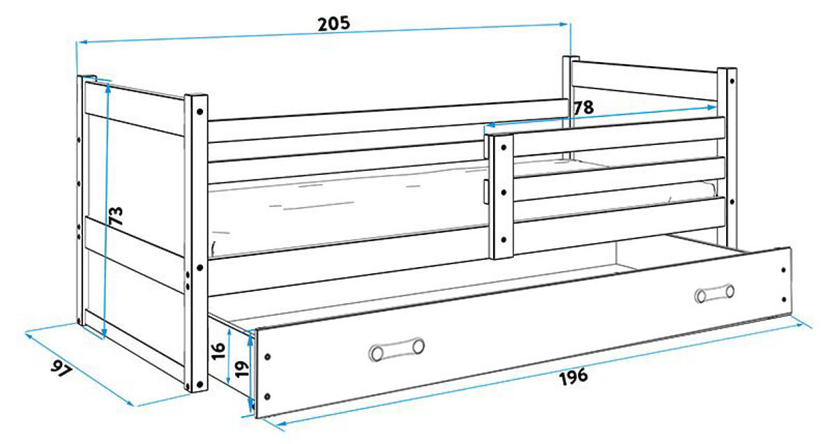 | Gyerekágy típus: | leesesgátlóval, tárolóval, matraccal és ágyráccsal, matraccal, ágyráccsal, minta nélkül |