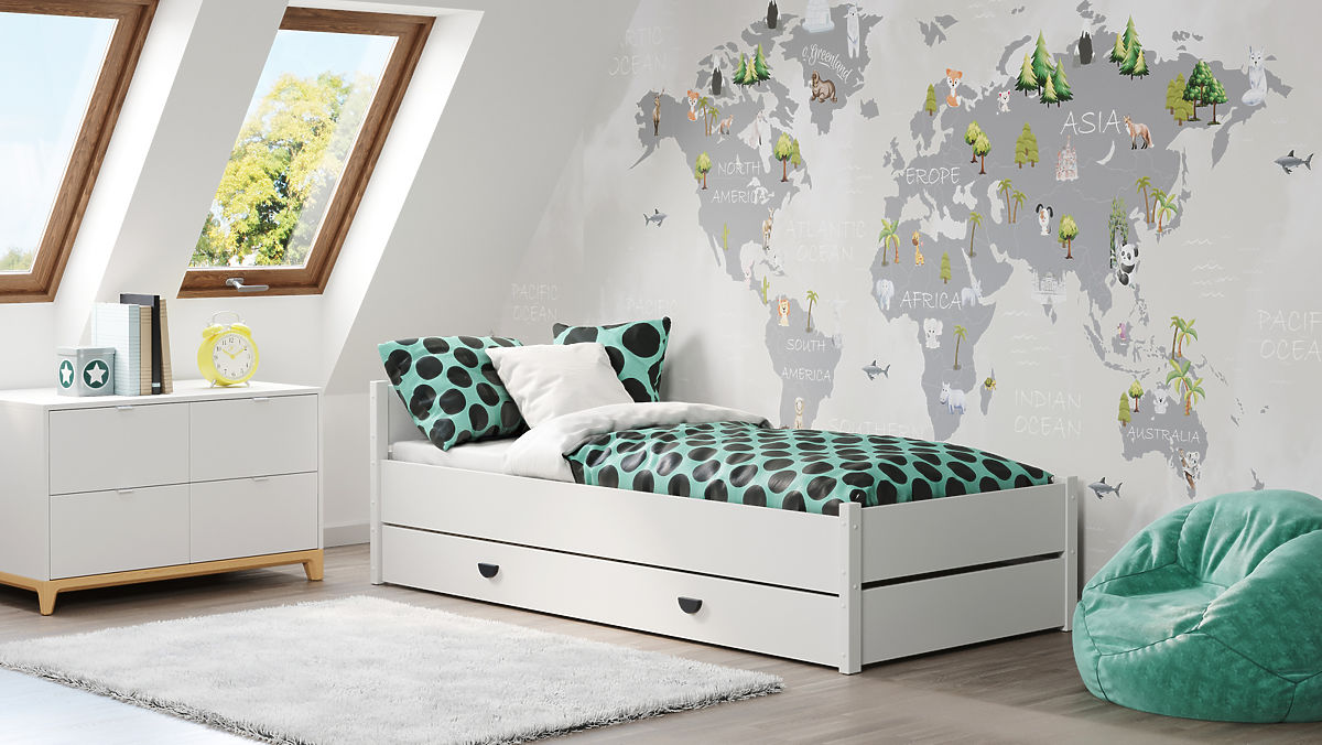 Fehér ifjúsági ágy fiókkal és 200x90 cm-es fekvőfelülettel. .. többet