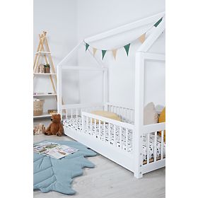 Az ágyhoz tartozik egy hátsó léce és egy oldalsó korlát. Az ágy univerzális, így az összeszerelés során Ön döntheti el, hogy a korlát a jobb vagy a bal oldalon legyen. A gyermekágy 30 kg-ig terjedő gyermekek számára készült.