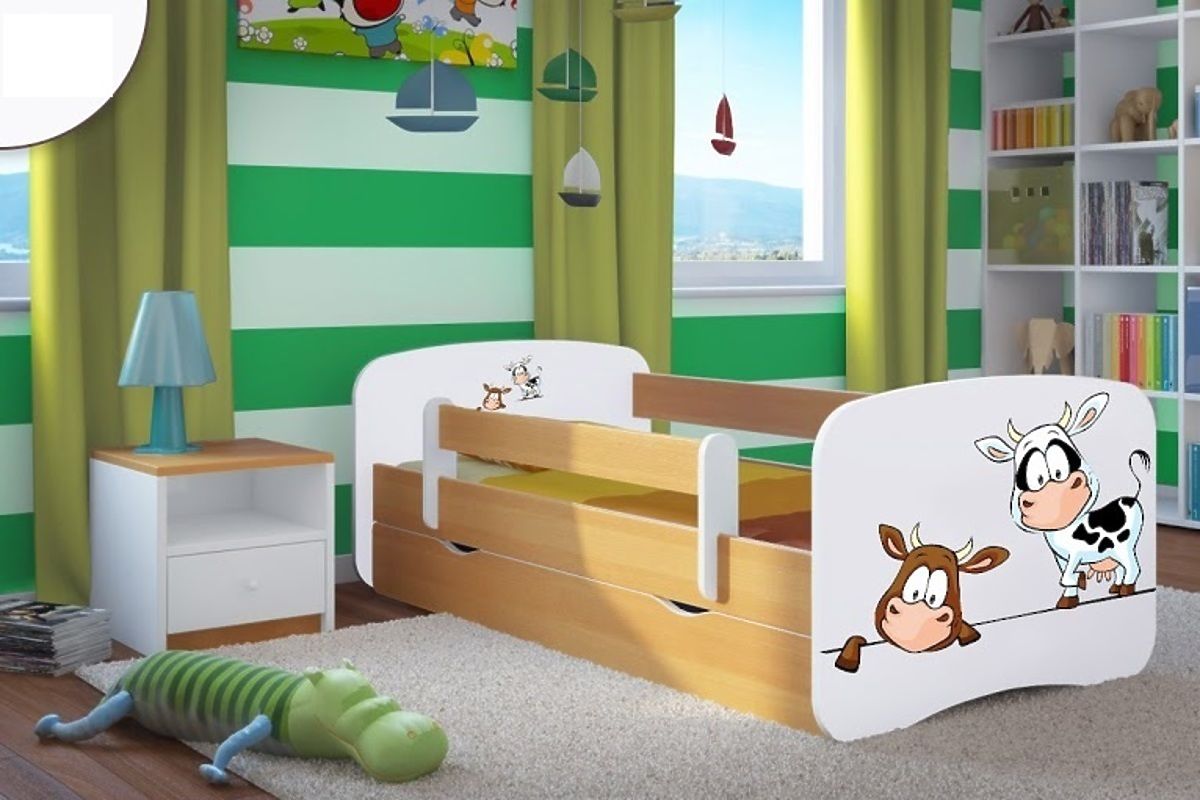 Gyönyörű gyerekágy, melynek elegáns bükk színe van és vidám bocik díszítik. Az ágy minden gyermek szobáját felragyotatja.