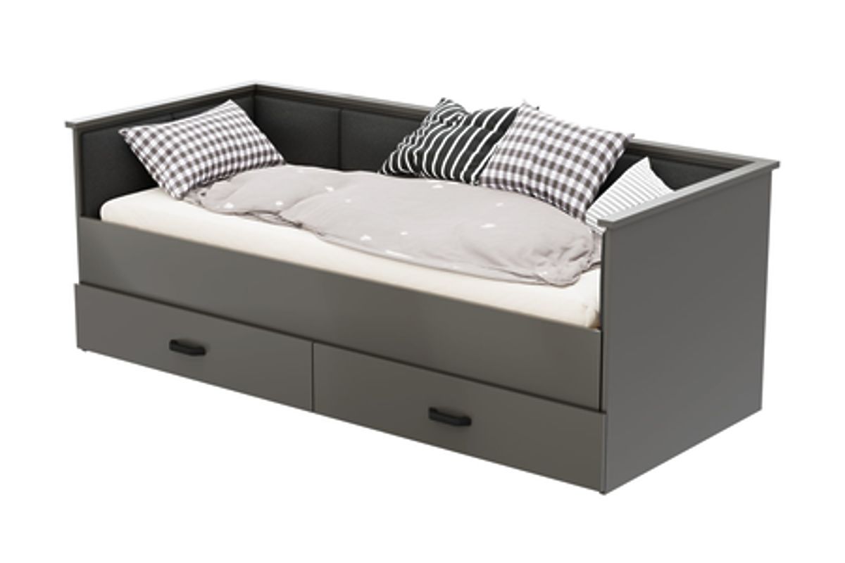 Kihúzható ifjúsági ágy kárpitozott panelekkel és tágas fiókokkal. .. többet