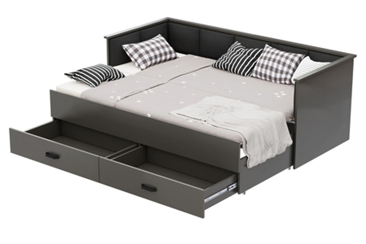 Banaby.hu » Gyerekágyak / Gyerekágyak vendégággyal / HELIOS kihúzható ágy kárpitozott grafit panelekkel 200x80/200x160