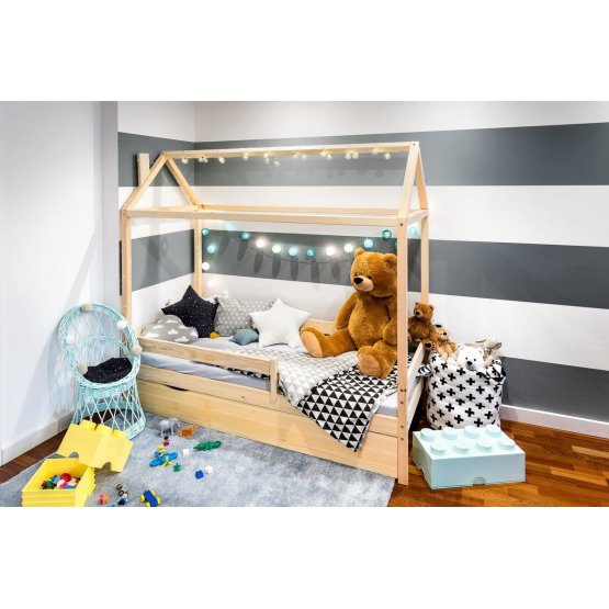 A Paul természetes színű gyerek házikó ágy fenyőfából készült. A természetes dekorációjú házikó ágyak megjelenésükkel vonzzák a tekintetet. A világos fenyő tömörfa ideális a skandináv stílusban berendezett gyerekszobákba. A Paul házikó ágy tartozéka a biztonsági korlát és a fa ágyrács.