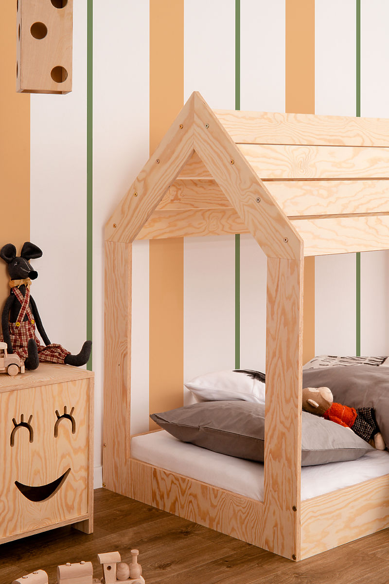 Montessori házikó ágy Chris megfelelő választás lesz fiúknak és lányoknak egyaránt. Időtlen és eredeti dizájnjának köszönhetően különböző színű kiegészítőkkel kombinálható, és nem csak ez - minden kis látogató örömmel fogadja majd a házikót, ahol kényelmesen olvashat, pihenhet vagy játszhat. A házikó felső része a tetőfedést utánozza, ide lámpákat lehet akasztani vagy más kreatív módon díszíteni, így nemcsak az alvóteret, hanem az egész szobát is otthonosabbá teheti. Konstrukciójának köszönhetően az ágy támogatja a gyermek önállóságát anélkül, hogy félni kellene az eséstől.