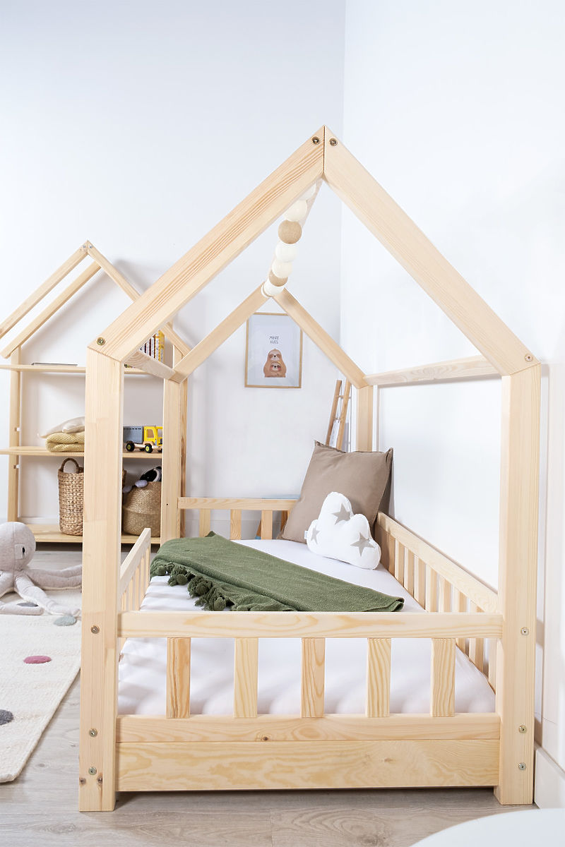 Banaby.hu » Gyerekágyak / Házikó gyerekágyak / Gyerekágy házikó formában Tea leesésgátlóval - természetes