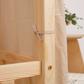 Az időtlen , bézs árnyalatú szövetfüggöny minden Leola Hip játszóházi ágyat kis királysággá varázsol. Hangulatos és biztonságos elalvási hellyé varázsolja a gyermekágyat, valamint játszósarokká vagy gyermekbúvóhellyé. A lombkorona tökéletesen díszíti majd minden kis hercegnő és kis lovag szobáját.